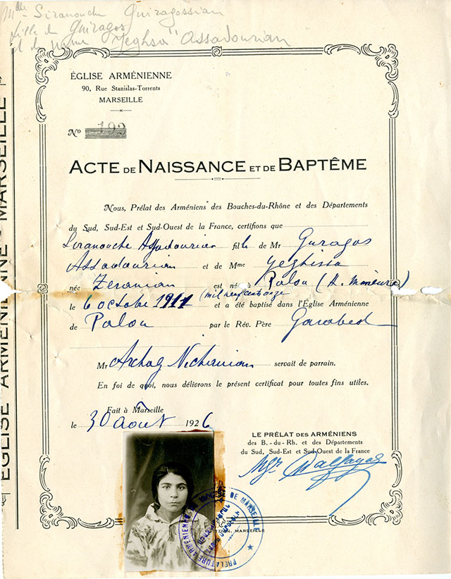 Registre de certificats de baptême – Prélature Arménienne de Marseille