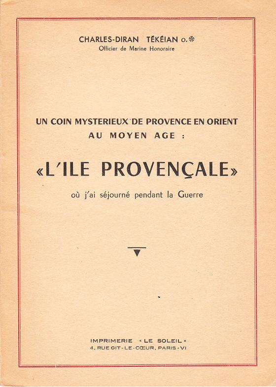 Marseille, la Provence et les Arméniens: leurs relations historiques, commerciales depuis les croisades jusqu’à nos jours. Publication de l’Institut historique de Provence à Marseille en 1929. 80 pages