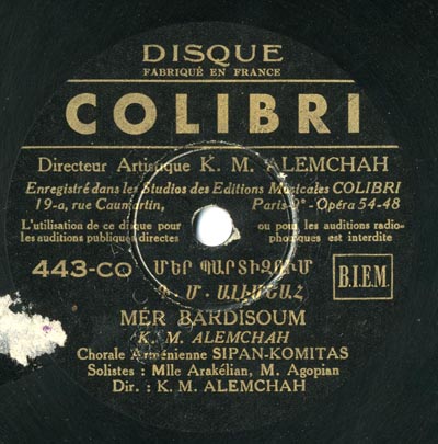 Chorale Arménienne Sipan-Komitas Solistes : Mlle Arakélian, M. Agopian, direction : Kourkène Alemshah.