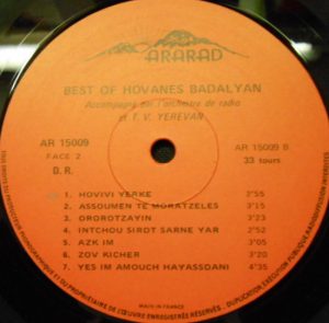 / Hovivi yérke Label 15009