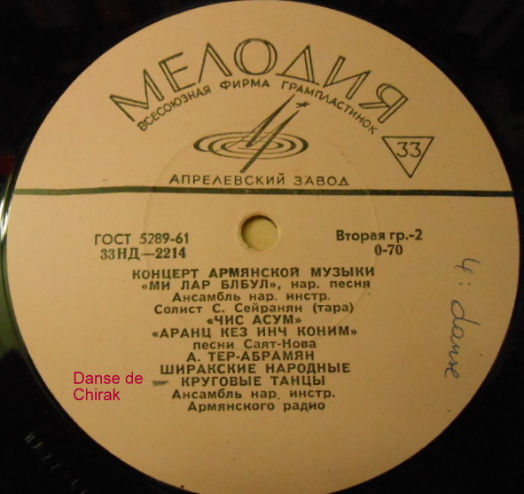 Chirag est une Ville d’Arménie. Orchestre de la radio d’Arménie.