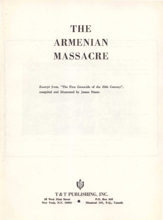 Excerpt from “The First Genocide of the 20th Century”, compiled and illustrated by James Nazer. Documents of the turkish atrocities Published by T & T Publishing, inc. 1970. 50 pages.