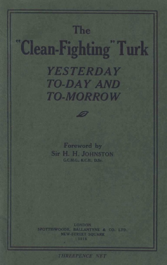 published by Spottiswoode, Ballantyne & co. , London, 1918. 66 pages. Table of contents Yesterday – 90 years ago – The Crimean war Today – The “clean-fighting” Turk – Turkish treatment of British prisoners Tomorrow