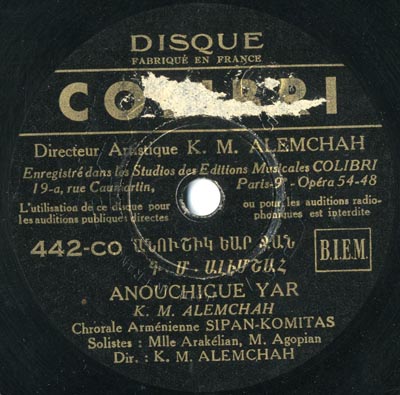 To be discovered: vinyl recordings from the 1950s, "78 rpms" recorded in France and "33 rpms" from the years 1960 to 1990, mostly from the period of Soviet Armenia.
