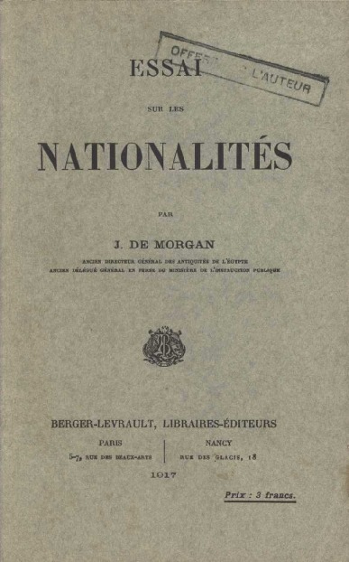 Sommaire: Avant-propos Première partie : Le problème des nationalités Deuxième partie : Les Arméniens Conclusions Berger-Levrault, Nancy, 1917. 150 pages