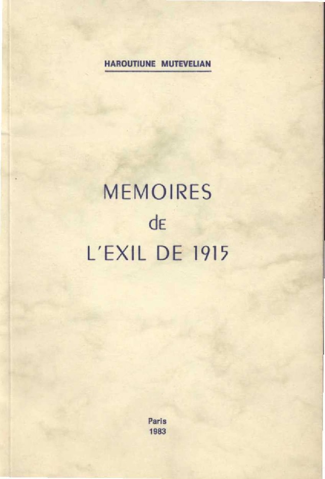 “Voici le récit d’un Arménien. Un parmi d’autres qui a échappé à l’effroyable génocide de 1915 perpétré par les Turcs.” Paris, 1983. Imprimé au Liban. 58 pages.