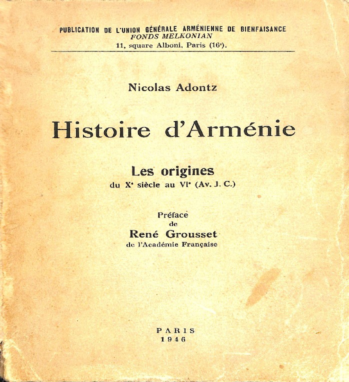 Les origines du Xème au VIème siècle avant J.-C. Publication de l’Union Générale Arménienne de Bienfaisance Fonds Melkonian. Publié à Paris en 1946. 474 pages