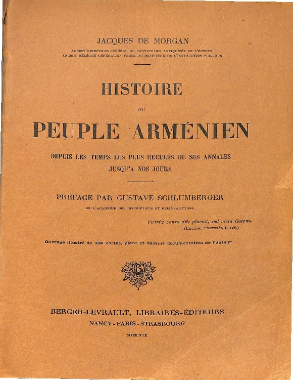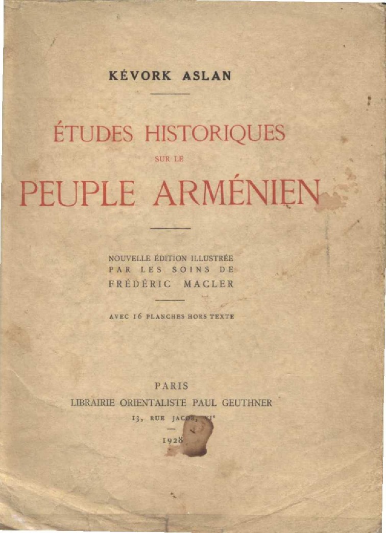L’origine du Peuple Arménien. Son glorieux passé. Ses services à l’Europe et à la Civilisation. Edité par Katchérian à Paris en 1962. 319 pages.