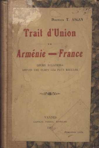 Trait d’union Arménie-France. Leurs relations depuis les temps les plus reculés. Publication par Lafolyes frères éditeurs à Vannes en 1917. 162 pages Table des matières I. A mes lecteurs 7 II. Vue d’ensemble 9 III. Les auxiliaires arméniens 18 IV. Loi de l’Indépendance de l’Asie Antérieure 27 V. Le Christianisme en Arménie 37 VI. Les … Continued