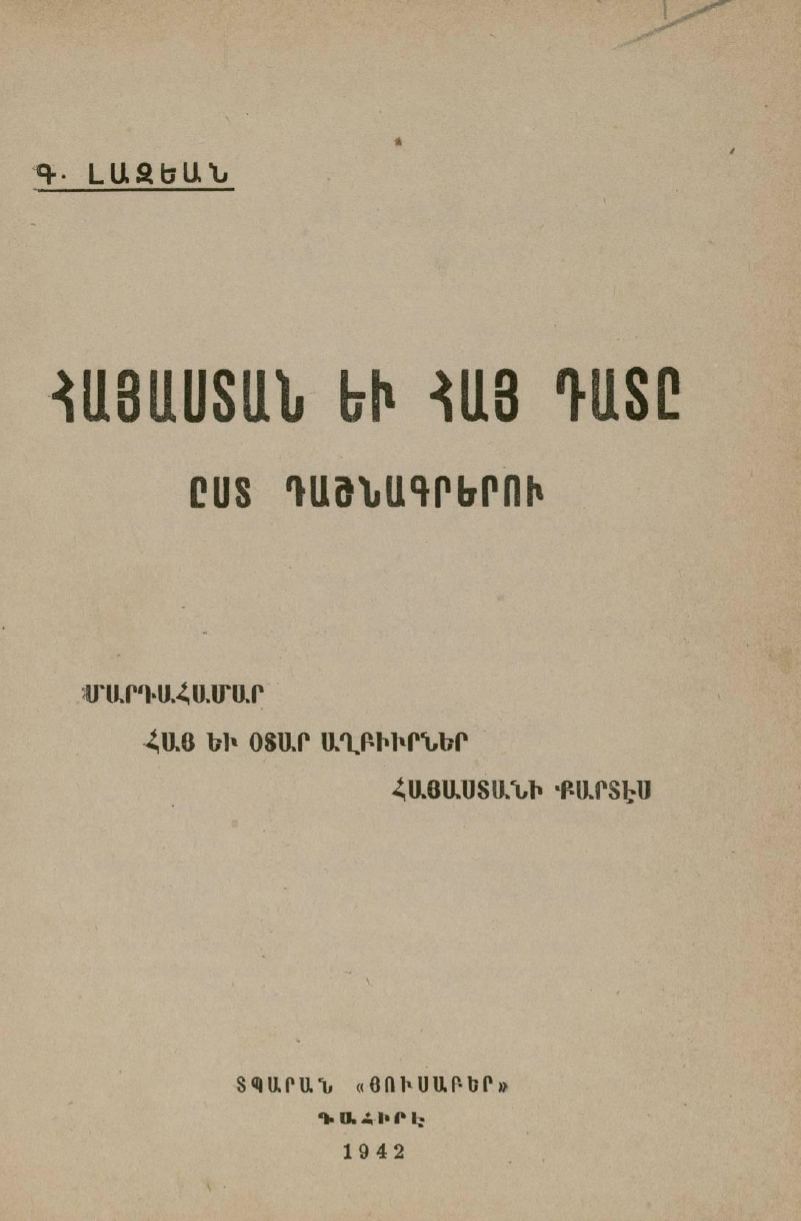 Récit de l’expédition de Mourad Khrimian (Sebatatsi Mourad), fédayin arménien, transcrit par Zabel Essayan. Mourad a pris le maquis lors des premiers jours du génocide Arménien et de la déportation des arméniens de Sébastia (Sivas, Turquie), se déplaçant depuis Sébastia vers Batoum.