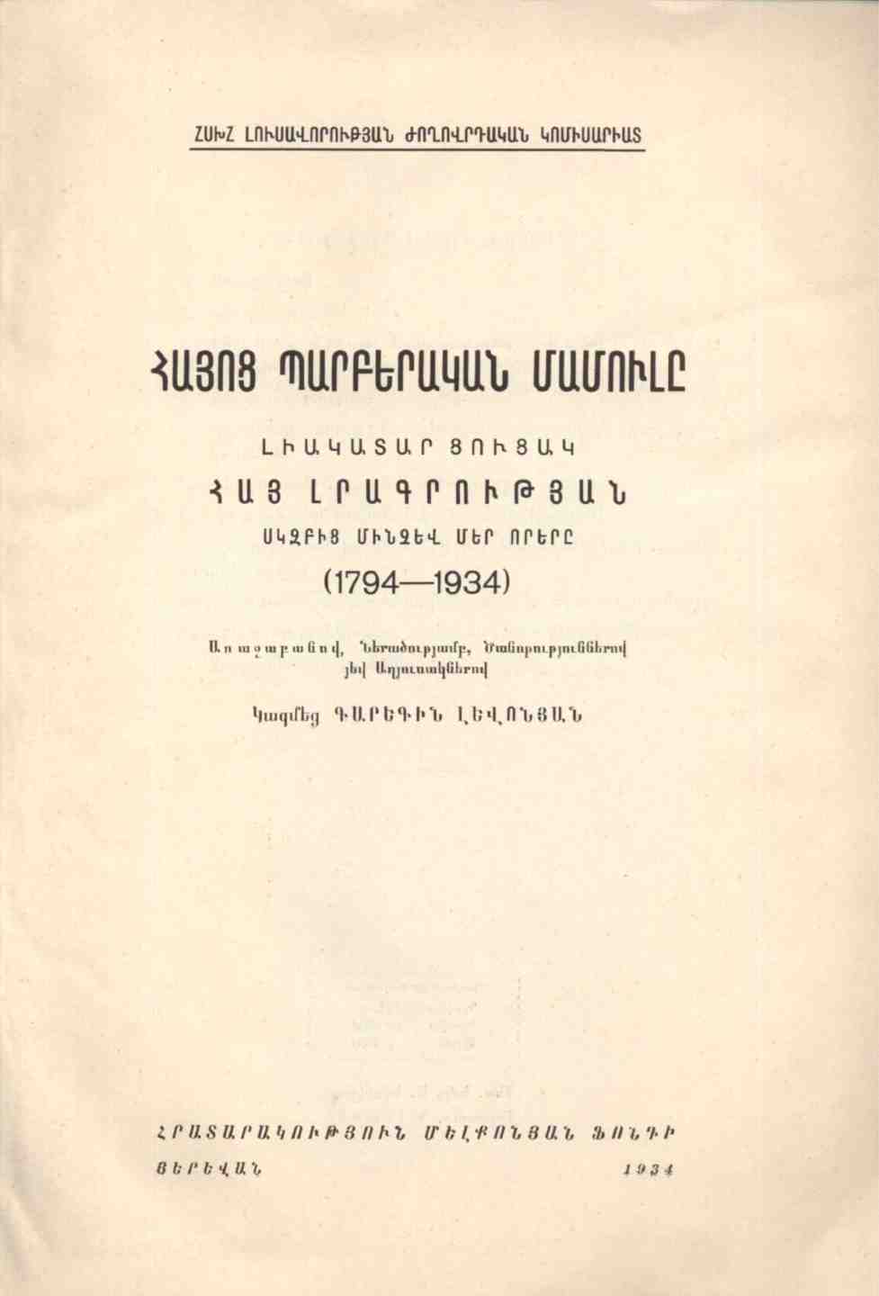 PREMIERE PARTIE Aperçu général des massacres et de leur Responsabilité Les massacres des Arméniens en général au point de vue politique et religieux, Principes invoqués par les Jeunes-Turcs à l’appui de leur programme et de leur méthode d’extermination, Mentalité jeune-turque et dispositions particulières à l’égard des Arméniens catholiques pendant les déportations et massacres de 1914-1918, … Շարունակութիւնը կարդալ