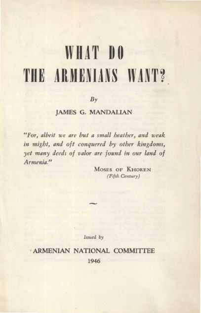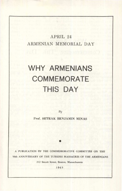 « Dedicated to the memory of my beloved father who was among thechief of the cilician martyrs of armenian in 1909, and to the memory of fifteen other martyrs of my immediate relatives in 1915 and 1916 ». Published Meshach Paul Krikorian in 1919. 52 pages.