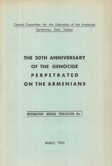 The 50th anniversary of the genocide perpetrated on the Armenians. Published by the central committee for the liberation of the Armenian territories from Turkey, Beirut, 1965. 12 pages.