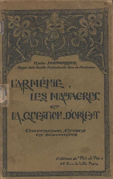 « Dédicace à la mémoire des Arméniens, parce que leur race laborieuse gênait les ambitions allemandes » Parution chez Payot et compagnie, Paris, 1919. 78