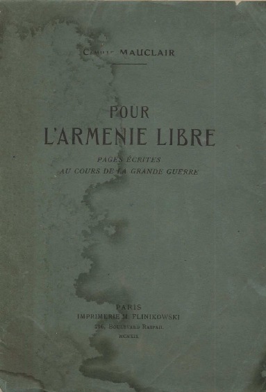 Pour l’Arménie Libre, pages écrites pendant la Grande Guerre. Flinikowski, Paris, 1919. 66 pages.