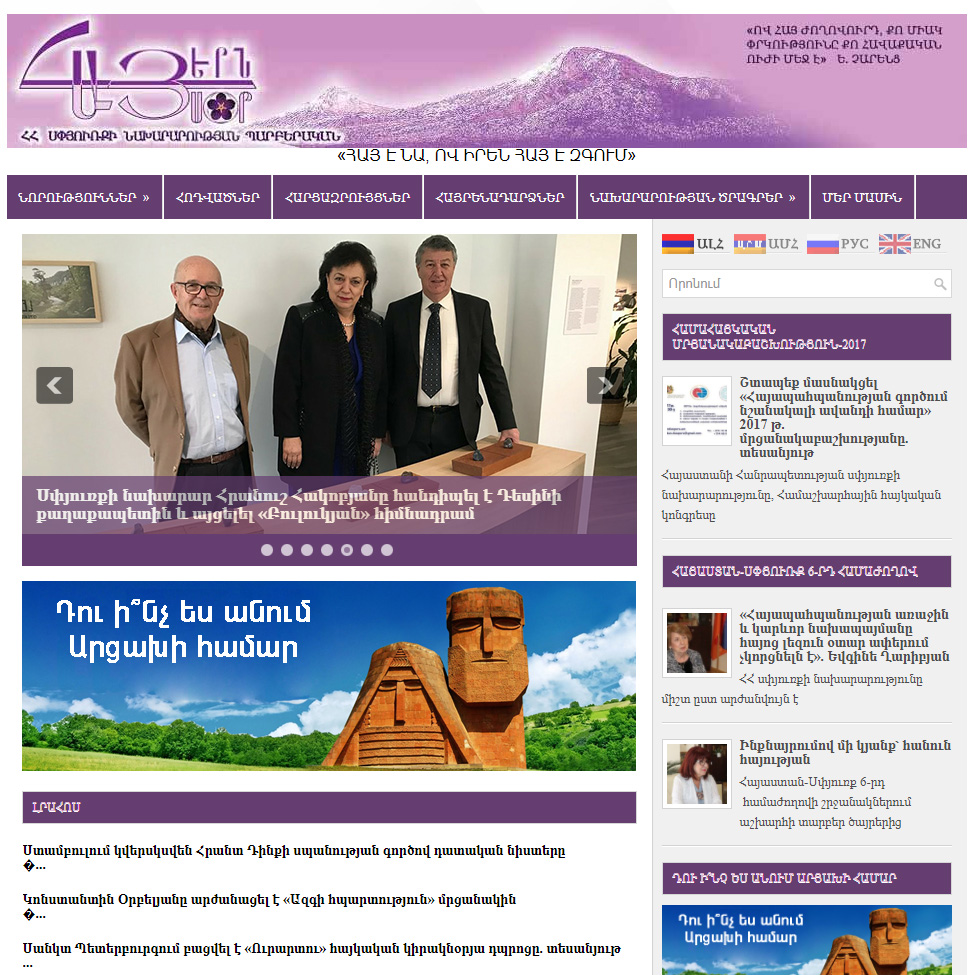 Hayer Aysor « Les Arméniens aujourd’hui » : site d’information du Ministère de la Diapora de la République d’Arménie.