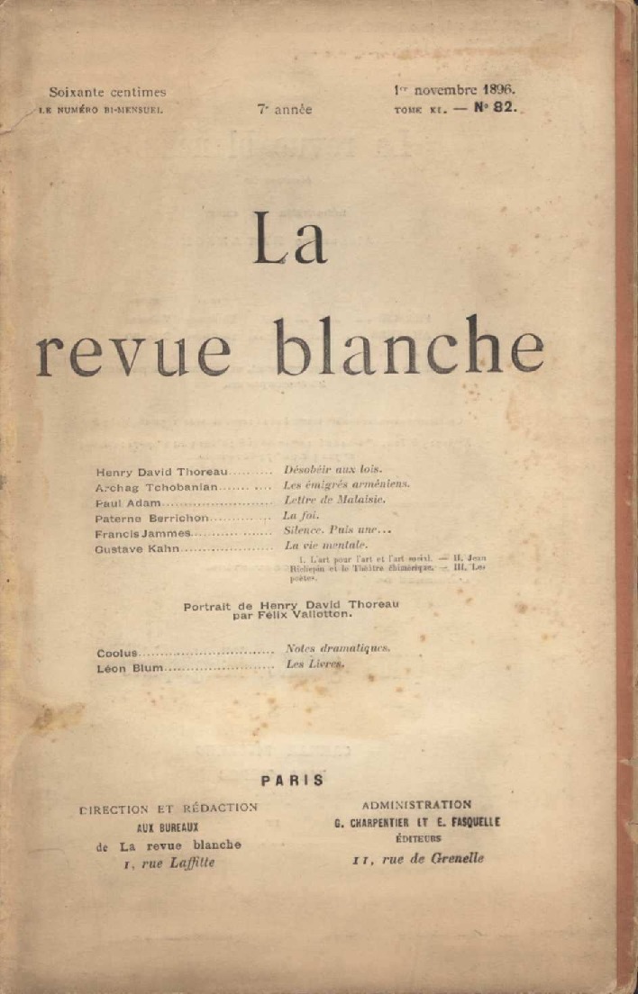 Article de Archag Tchobanian sur les émigrés arméniens en France. Publication par la revue blanche à Paris le 1er novembre 1896. 8 pages.