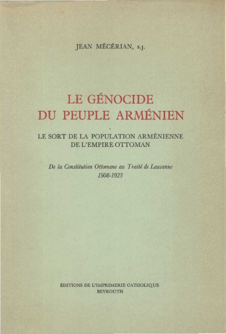 Le sort de la population arménienne de l’Empire Ottoman de la constitution Ottomane au traité de Lausanne 1908- 1923. Publication par les éditions de l’imprimerie catholique à Beyrouth en 1965. 125 pages.