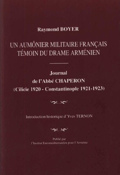 Un aumônier militaire français témoin du drame arménien. Journal de l’abbé Chaperon (Cilicie 1920 – Constantinople 1921-1923). Introduction historique d’Yves Ternon. Publié par l’institut euroméditerranéen pour l’Arménie