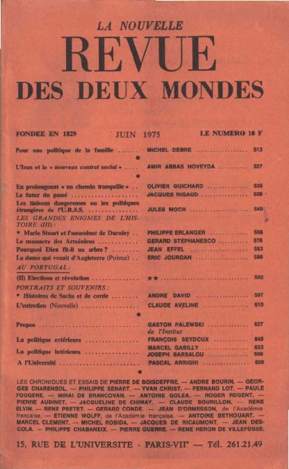 Le massacre des Arméniens par Gérard Stéphanesco Publication par la Revue des deux mondes en juin 1975.