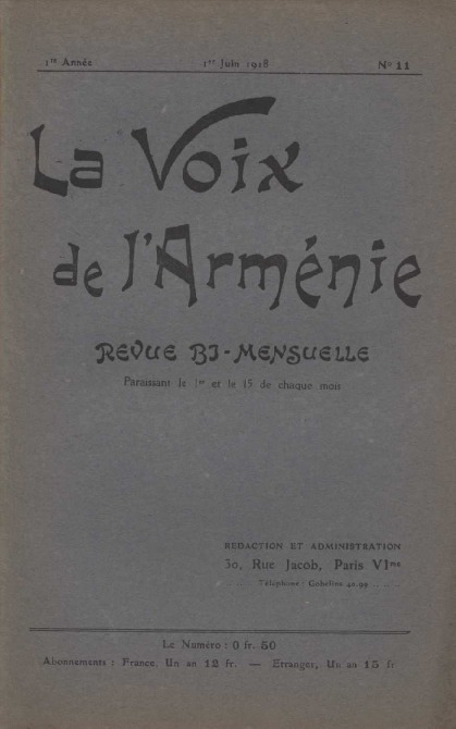 15ème et 16ème numéros de la Voix de l’Arménie publié le 1er août 1918 à Paris. 76 pages.