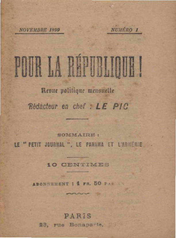 Journal de critique politique et de perfectionnement social. Parution le 22 mai 1920 à Paris. Article de J.-H. Rosny jeune (pseudonyme de Séraphin Justin François Boex) « Sauvons l’Arménie du joug turc! ». Le refus par les puissances d’accepter le mandat sur l’Arménie a pour résultat de maintenir l’Arménie sous le joug turc. 3 pages