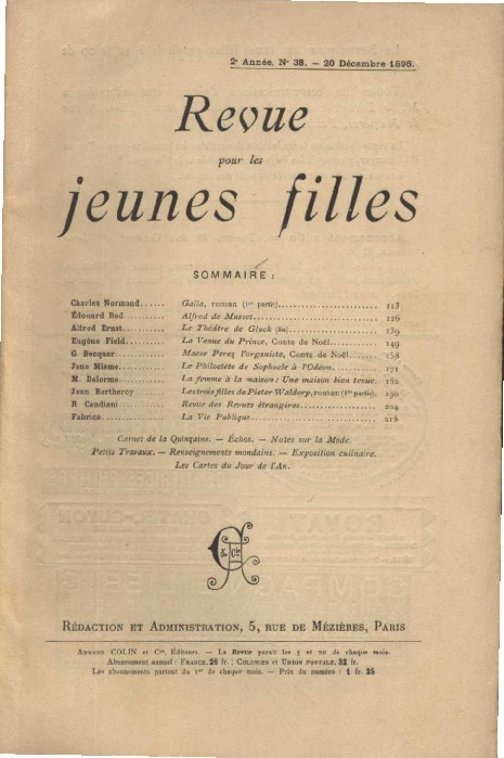 La vie publique en Orient, Arménie et Abyssinie. Parution dans la revue des jeunes filles le 20 décembre 1896. 11 pages.