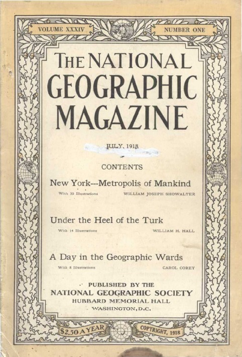 Article about « Under the heel of the Turk » by William H. Hall A land with a glorious past, a present of abused opportunities, and a future of golden possibilities Published in july 1918 by the National Geographic Society, Washington D.C. 21 pages.