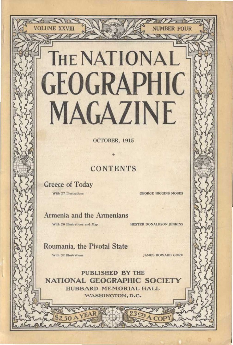 Article about « Armenia and the Armenians » by Hester Donaldson Jenkins. Published in october 1915 by the National Geographic Society, Washington D.C. 35 pages.