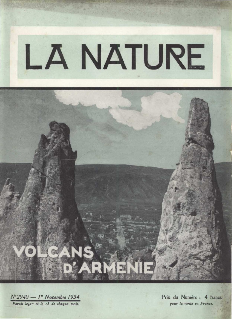 Article scientifique sur l’activité volcanique de l’Arménie Soviétique par Sedrak Abdalian, géologue à l’Université d’Erevan. Parution dans la revue La Nature le 1er novembre 1934.