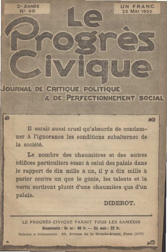 Journal de critique politique et de perfectionnement social. Parution le 22 mai 1920 à Paris. Article de J.-H. Rosny jeune (pseudonyme de Séraphin Justin François Boex) « Sauvons l’Arménie du joug turc! ». Le refus par les puissances d’accepter le mandat sur l’Arménie a pour résultat de maintenir l’Arménie sous le joug turc. 3 pages