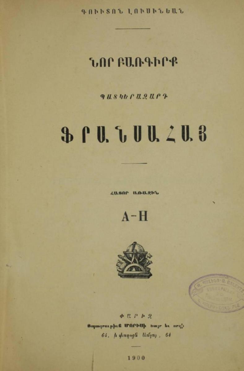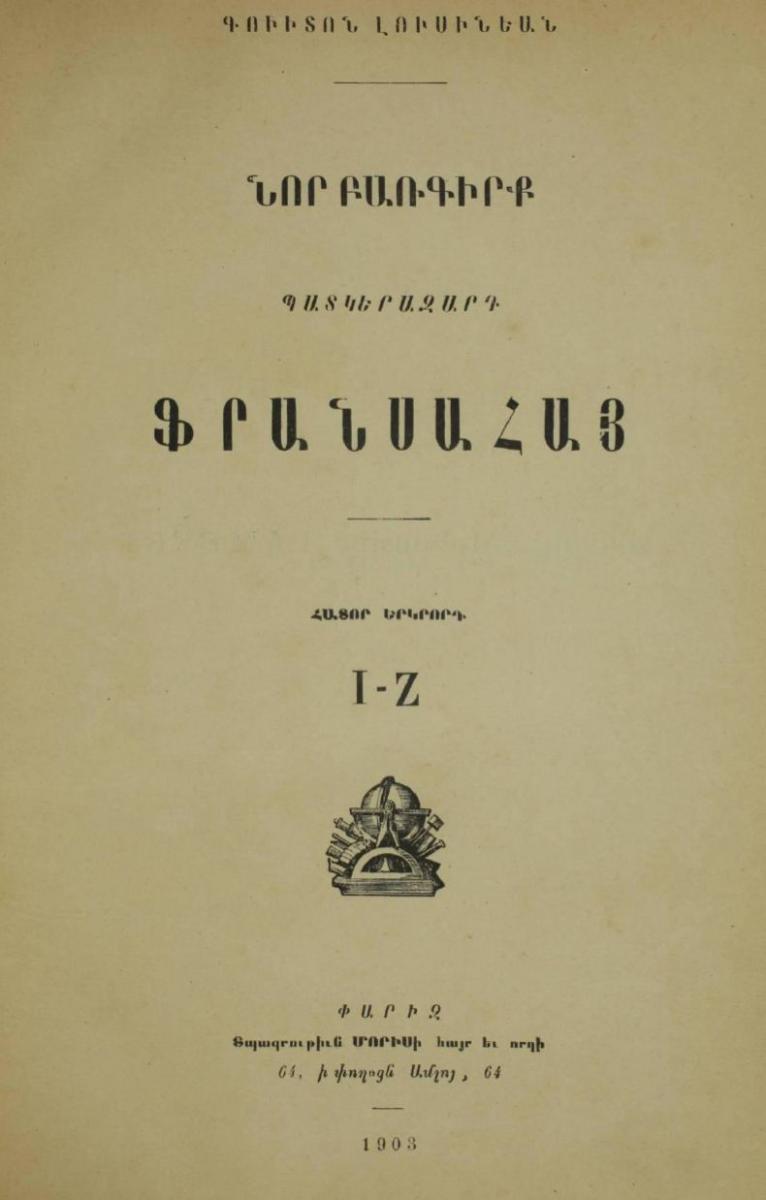 Dictionnaire Arménien Français des Arts des Sciences et des Lettres – A – L