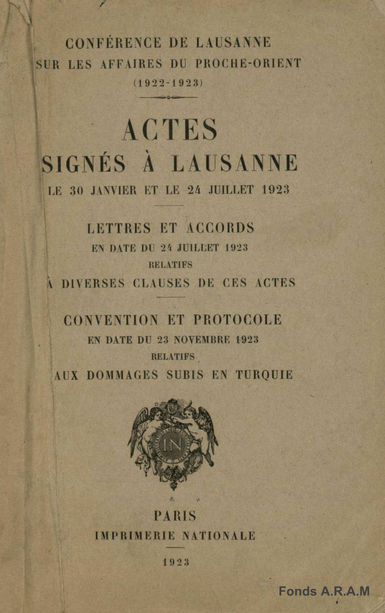 Conférence de Lausanne – Actes signés les 30 Janvier et 24 Juillet 1923
