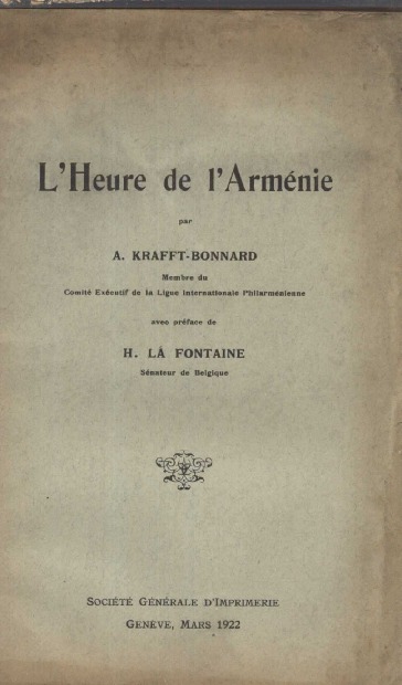 Essai sur le respect du Traité de Sèvres par la Turquie. Publié en mars 1922. 61 pages. Préface de Henri La Fontaine, sénateur de Belgique