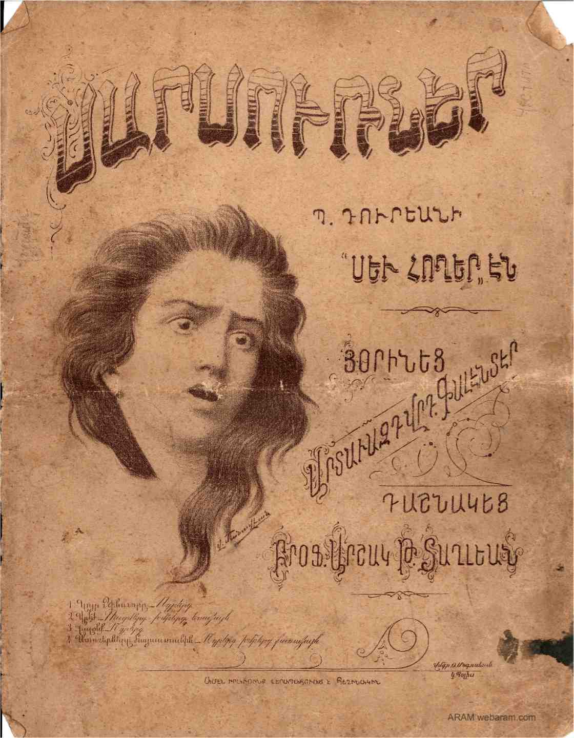 Les plus belles chansons de Djivani le grand poète populaire arménien. Traduction précédée d’une notice biographique par Archag Tchobanian. Publication par Ernest Leroux à Paris en 1919. 54 pages.