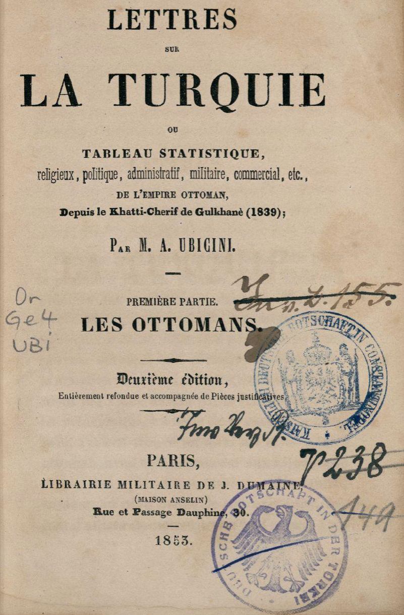 Tableau Statistique, religieux, politique, administratif, militaire, commercial, etc., de l’Empire Ottoman depuis le Khatti-Cherif de Gulkhané (1839)