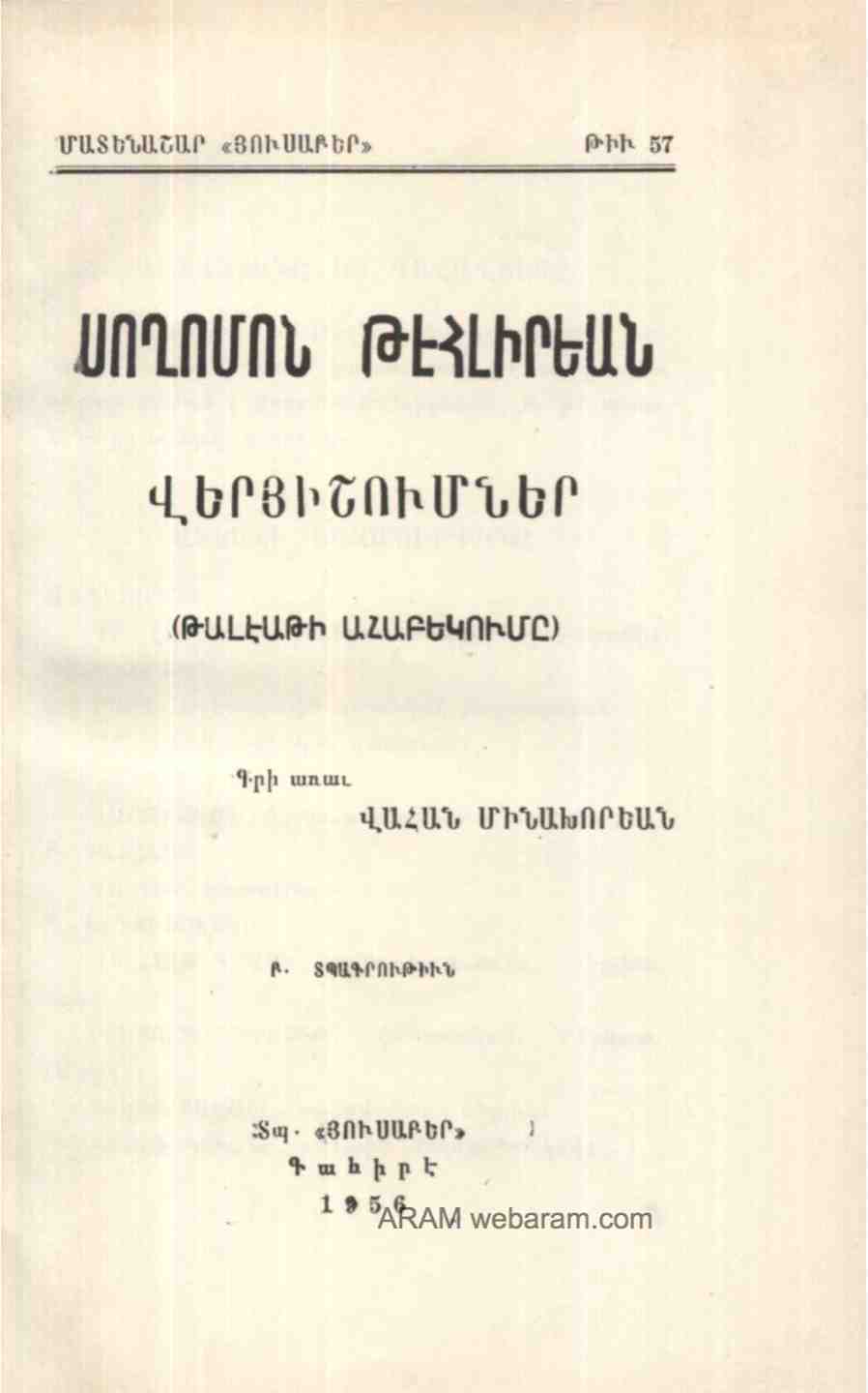Publication en hommage aux combattants de la Légion de Volontaires Arménienne engagés dans les forces Françaises sur le front de Palestine, et qui prirent part à la bataille d’Arara.