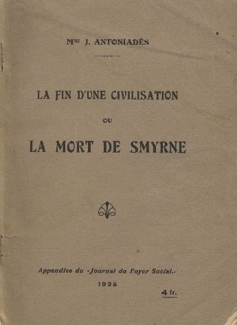 Témoignage sur les massacres de Smyrne par les troupes Kémalistes. Le livre est assorti d’une double page, photographie panorama de la ville avant la catastrophe. Publication en 1925 par le Journal du Foyer Social.