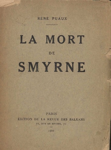 Témoignage de René Puaux, journaliste, sur les massacres de Smyrne par les troupes Kémalistes. Publication par la Revue des Balkans à Paris en 1922. 36 pages.